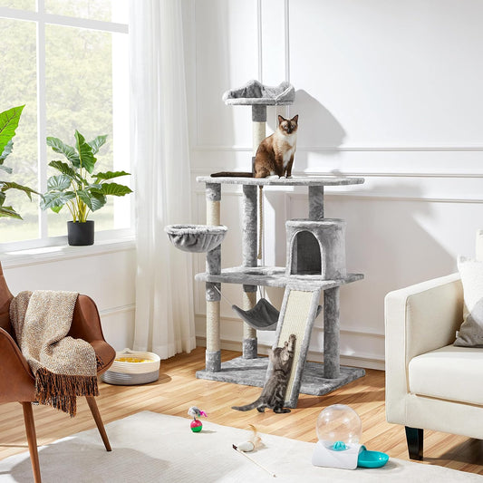 63.5In Multi-Level Cat Tree Tower Condo with Scratching Posts, Platform & Hammock, Cat Activity Center Play Furniture for Kittens, Cats, and Pets